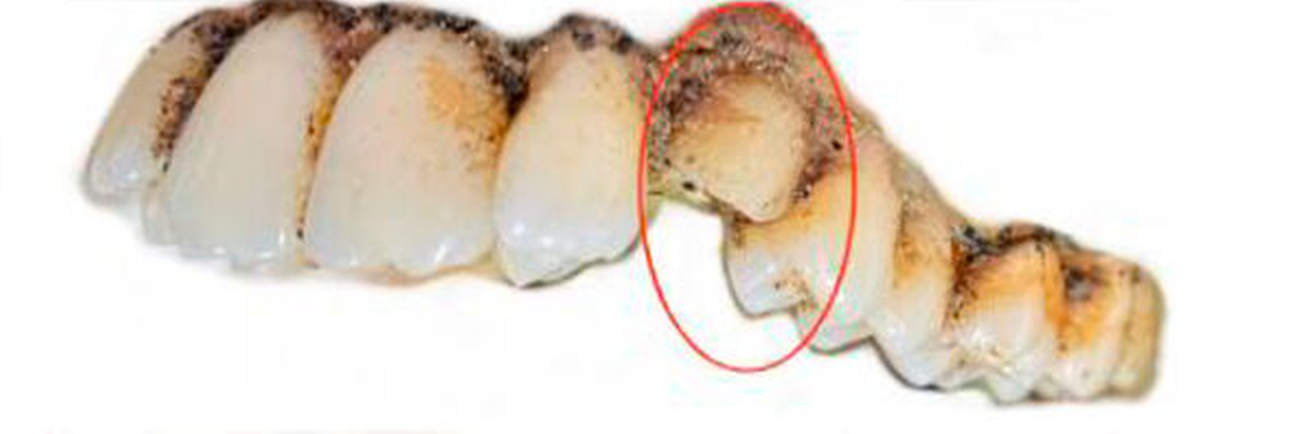 Infraokklusion 63! Charakteristisches Lächeln, Fotos würden eine Lücke oder einen „zu kurzen Zahn” zeigen