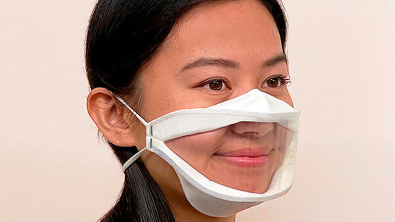 Ein weiteres, komplett transparentes Produkt ist der sogenannte CrystalGuard. Die wiederverwendbare, hoch atmungsaktive, klare Maske soll neben einem gutem Schutz vor allem Menschen mit Hörproblemen oder Kommunikationsbehinderungen das Lippenlesen erlauben. Das ist womöglich auch beim teiltransparenten Produkt des US-Unternehmens Matregenix möglich. Nach Angaben des Herstellers lässt das Nanomaterial bei FFP2-Filterleistung 70 Prozent der Mundpartie durchscheinen, um nur „minimale Kommunikationsbarrieren” aufzubauen.