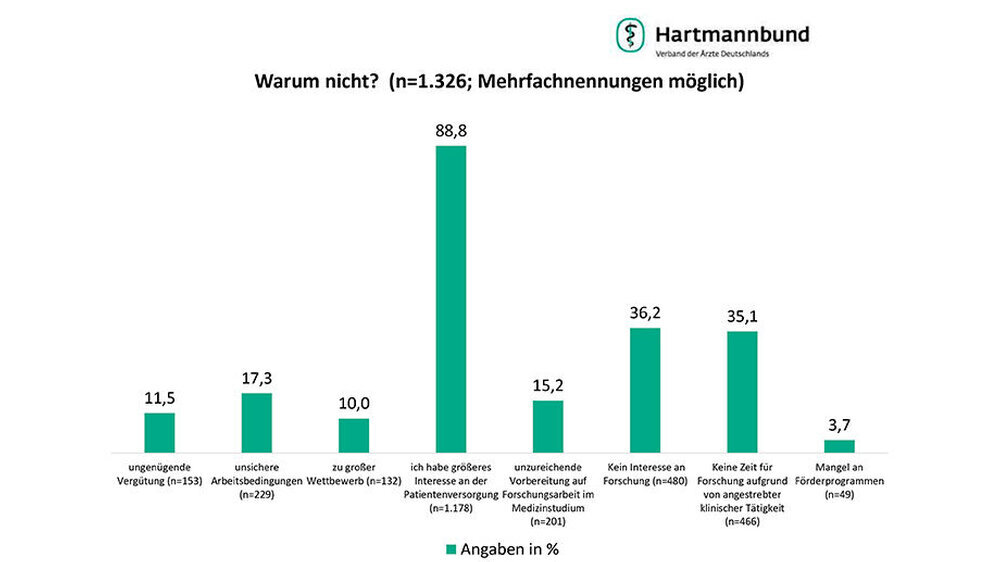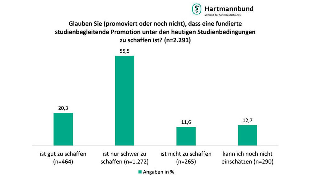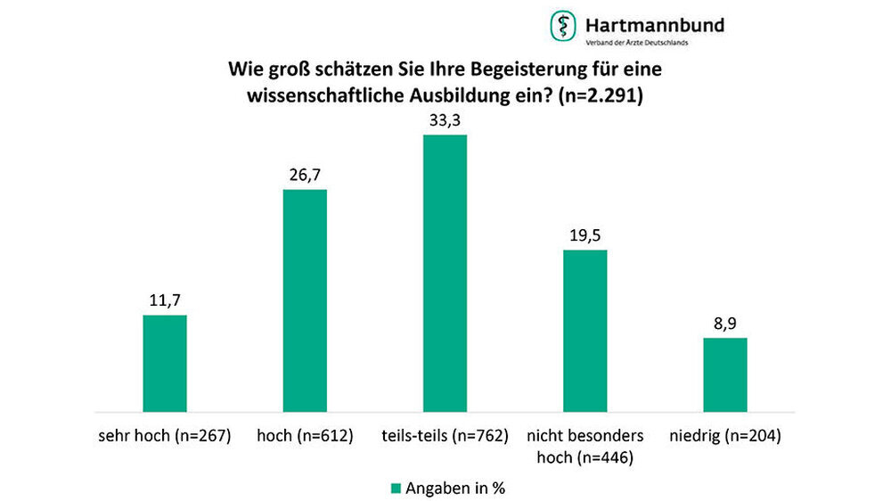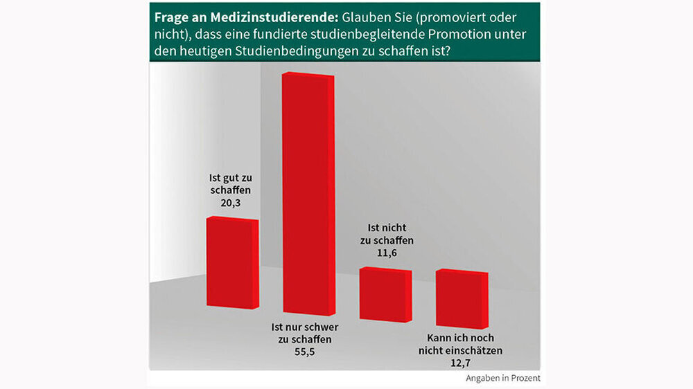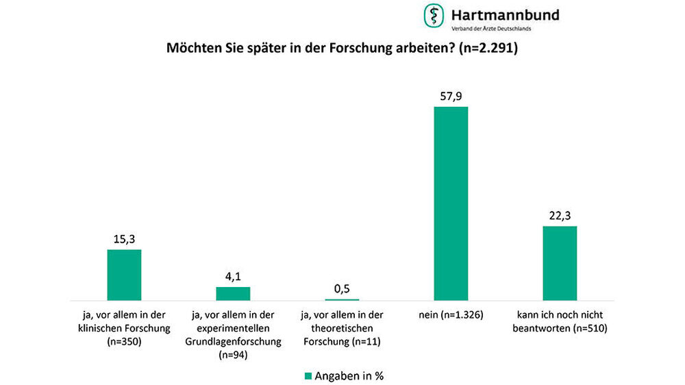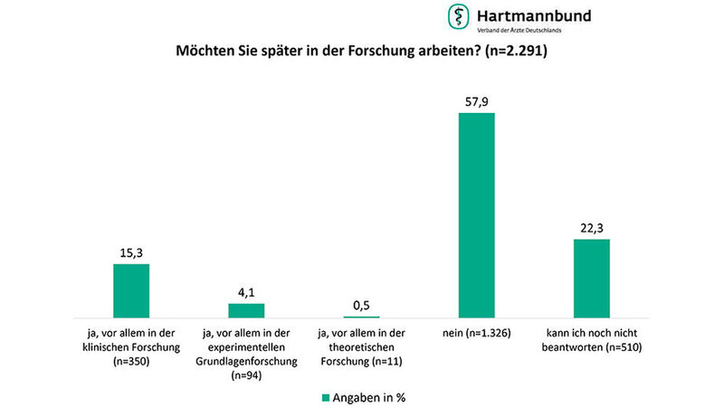 Die meisten angehenden Ärzte möchten promovieren. Dabei zieht es das Gros in die Patientenversorgung, in die Forschung wollen die wenigsten. Das ergab eine Umfrage des Hartmannbundes unter 2.291 Medizinstudenten und Assistenzärzten.