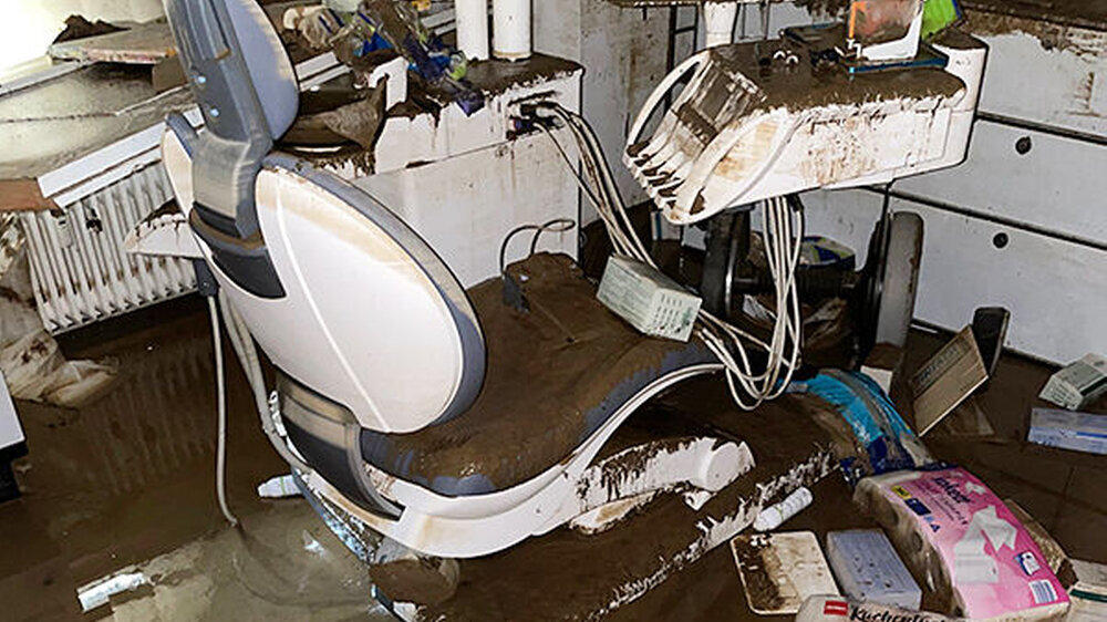 Mindestens 160 Zahnarztpraxen sind von der Flutkatastrophe im Sommer 2021 betroffen. Die Schäden reichen von Verdienstausfällen wegen Stromausfall bis hin zum Totalverlust der Einrichtung und baulichen Infrastruktur.