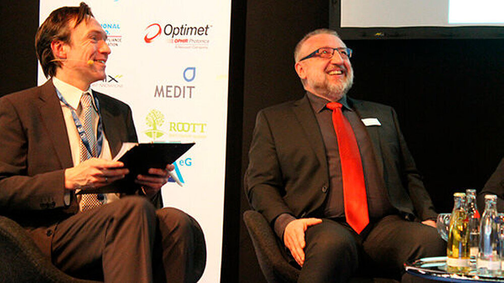Dr. Günther E. Buchholz, stellvertretende KZBV-Vorsitzender: "Ich habe die Rechnungen am Anfang noch mit der Schreibmaschine geschrieben - das müssen wir zum Glück heute nicht mehr. Die Programme müssen als Erstes praxistauglich sein, das heißt, anwenderfreundlich - auch in dem Sinne, dass die Daten in andere Systeme geschickt werden können. Stichwort Interoperabilität. Auf diese Schnittstellen, die Anwendungen zwischen den Geräten ermöglichen, kommt es an. Ein Rundgang auf der IDS zeigt, wie uns Software-Systeme heute die Arbeit erleichtern können, etwa bei den digitalen Abdrücken."