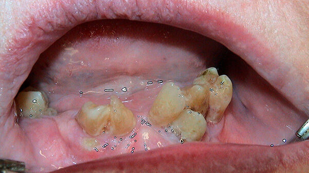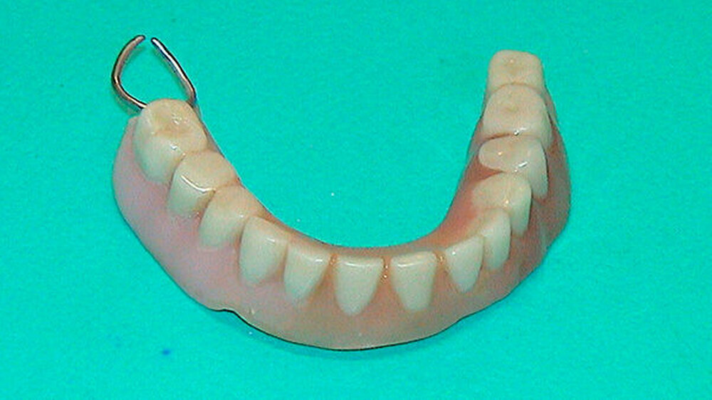 Er schreibt: "Als eine Patientin unsere Praxis aufsuchte, um sich im Notdienst ihre frakturierte totale Oberkieferprothese reparieren zu lassen, so war dies an sich noch kein spektakuläres Ereignis (Abbildung 1). Doch als sie gebeten wurde, auch ihre subtotale Unterkieferprothese mit Drahtklammerfixierung am teil-retinierten Zahn 47 zum Zwecke einer eingehenden Inspektion der Mundhöhle zu entfernen, reagierte sie merkwürdig zögerlich, unwillig und peinlich berührt. Erst nach eindringlicher Bitte gab sie nach und entfernte den Zahnersatz (Abbildung 2).