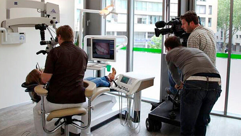 Und wie wird man als Drehkulisse "auserkoren“? Nun, die Lage im Kölner Media Park sei fast ein Selbstläufer, erzählen die Zahnärzte. Fernsehteams gehen dort ein und aus, manche der Mitarbeiter gehören sogar zum Patientenstamm. Für die Sendung "Die Ärzte - der Medizintalk im ZDF" wurde in der Praxis ein Beitrag zum Thema Bleaching gedreht, und auch das RTL-Frühstücksfernsehen war schon da.