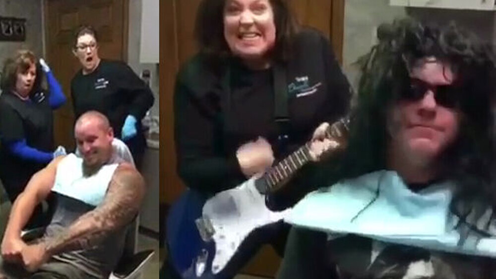 Praxismitarbeiterin Tracy Driver streicht sich durch die schwarze Langhaarperücke, der Patient im Behandlungsstuhl wippt versonnen zur Musik, dem 60er-Jahre-Hit "I got you babe". Dann singen sich die beiden an - so wie damals Sonny & Cher.