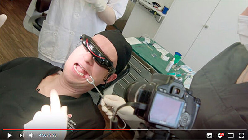 "Das war ein schwieriger Eingriff!" Der Münchener Implantologe Dr. Achim Schmidt setzt sich selbst ein Titanimplantat - und lässt sich dabei filmen.