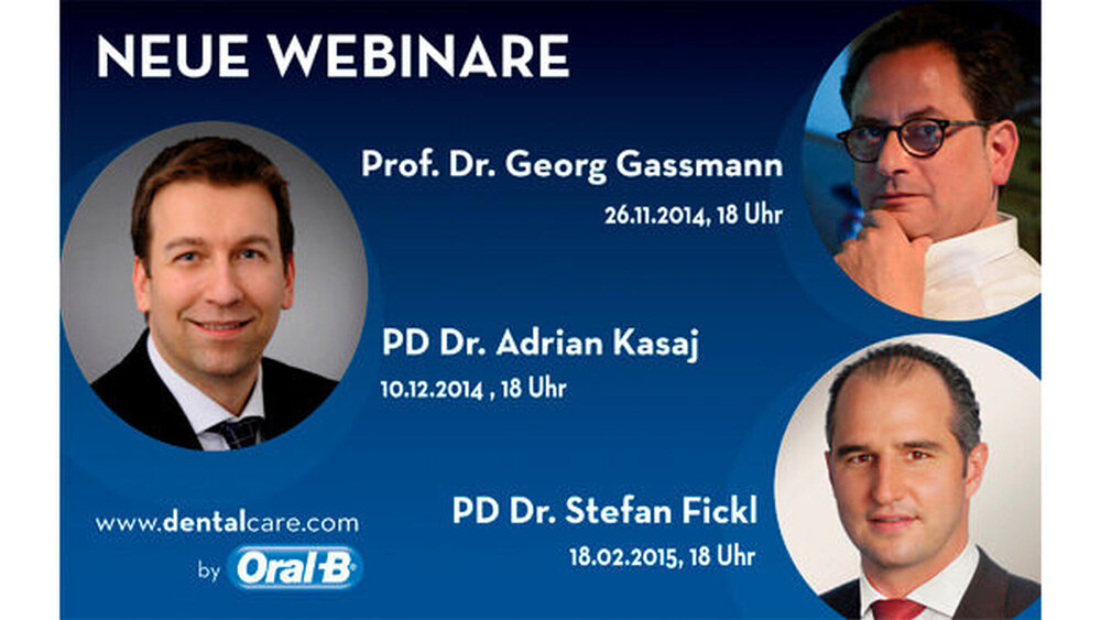 Weiter geht es am 10. Dezember 2014 mit dem Webinar unter der Leitung von PD Dr. Adrian Kasaj, Universitätsklinikum Mainz. Er befasst sich mit den Ursachen, der Prävention und der Behandlung parodontaler Rezessionen und erläutert die wichtigsten Verfahren der Rezessionsdeckung. Für einen besonders praxisnahen Lernprozess sorgen dabei klinische Fallbeispiele.