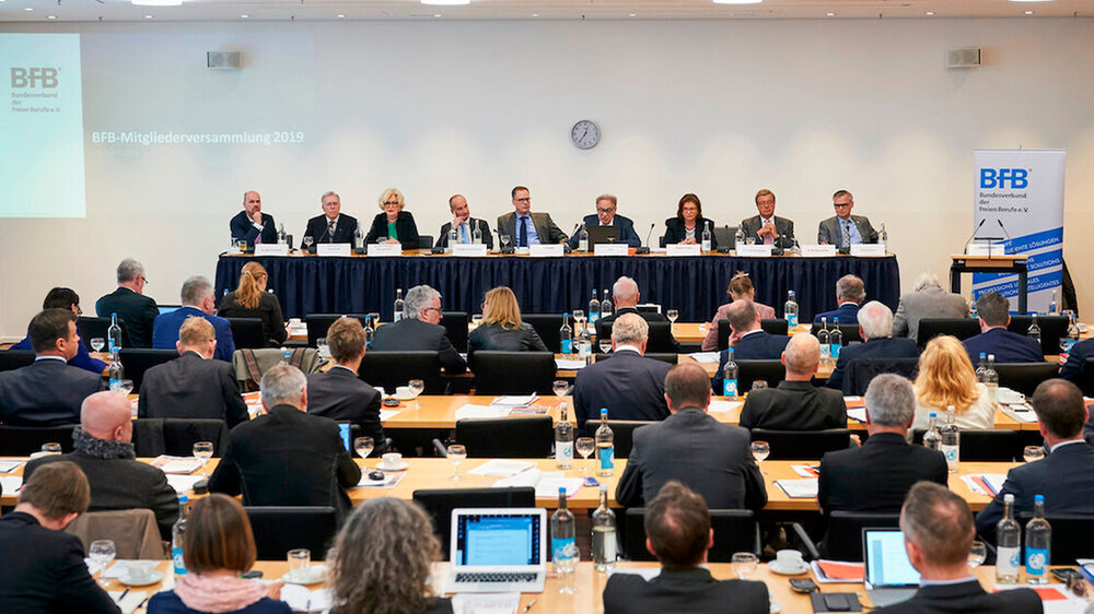 Die Mitgliederversammlung des Bundesverbandes der Freien Berufe e.V. (BFB) wählte am 11. April in Berlin sowohl das BFB‐Präsidium als auch den neuen BFB‐Vorstand für die kommenden zwei Jahre. Mit dem Deutschen Bundesverband Informationstechnologie für Selbständige (DBITS e.V.) wird zum 1. Mai 2019 eine weitere Freiberuflerorganisationen in den BFB aufgenommen.