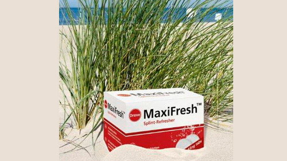 Denn Bakterien, die Eintrübungen und Verfärbungen der Schiene verursachen können, machen leider keine Ferien. Die Vorteile einer Reinigung mit Sprudeltabletten gegenüber dem Putzen mit Bürste und Zahncreme liegen auf der Hand. Sie sind materialschonend, weil sie nicht mit Schleifstoffen reinigen. Sie reinigen quasi „von selbst“: Tablette in ein Gefäß mit Leitungswasser, Schiene dazu, fertig. Und sie sind speziell für die Reinigung hochwertiger Dentalprodukte entwickelt worden. Bei täglicher Reinigung wird die Lebensdauer dieser Produkte erhöht und eine dauerhaft einwandfreie Hygiene und Funktion gewährleistet. MaxiFresh ist unter der Nummer 9522697 bei allen Apotheken gelistet.