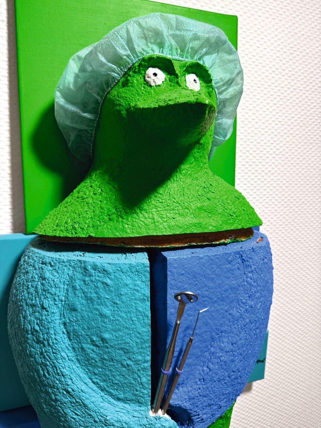 Durch die farbenfrohen Werke wollen wir den sonst sehr sterilen Praxisalltag aufbrechen und nach Möglichkeit mit unseren Patientinnen und Patienten über die Skulpturen ins Gespräch kommen.