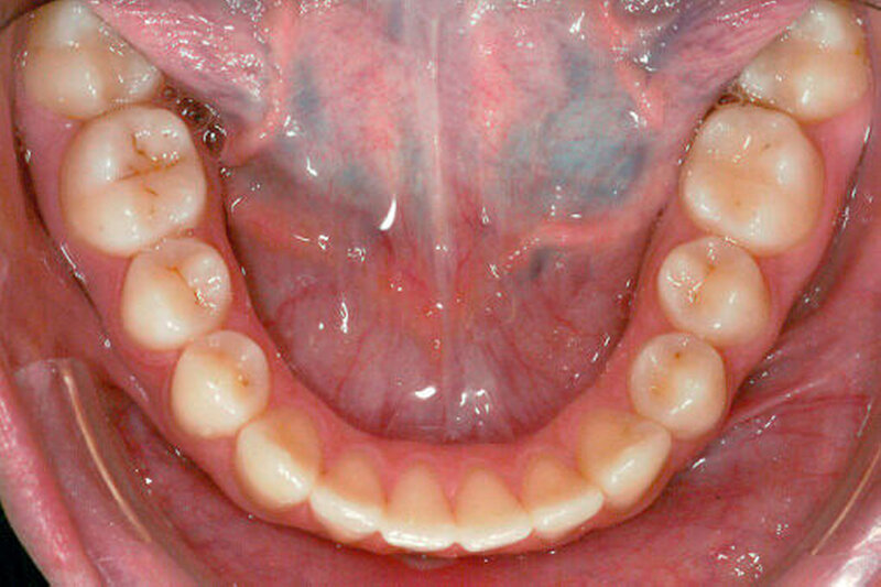 Der Befund lautete: Dysgnathie der Angle-Klasse II, Transposition von 22 und 23, Hypoplasie von 12 und 22.