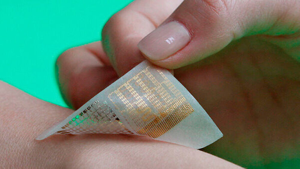 Als Dehnungs- und Bewegungssensor dient dabei ein Netz aus gewundenen Silizium-Nanomembranen, als Arbeitsspeicher fungiert eine Art Sandwich aus Titandioxid mit eingebetteten Gold-Nanopartikeln. Welche Sensoren dieses Pflaster trägt, lässt sich beliebig abwandeln, wie die Forscher betonen.