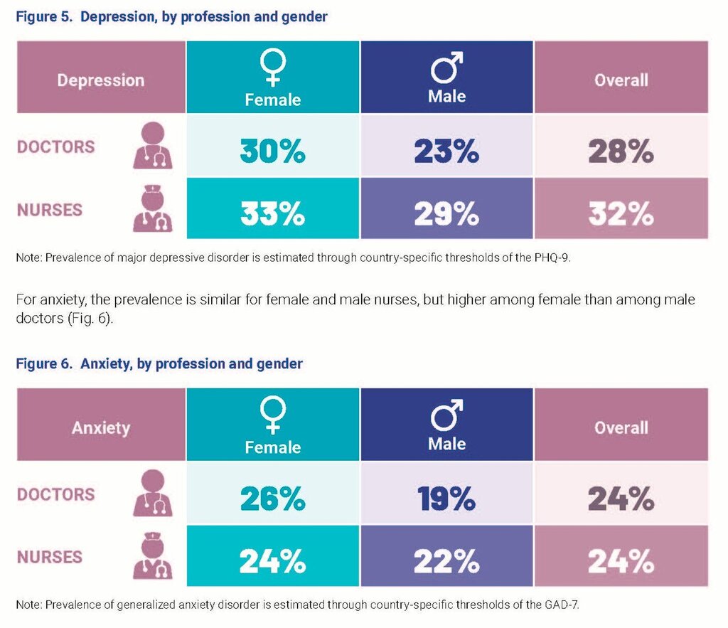 Die Ergebnisse weisen auf eine hohe Prävalenz psychischer Erkrankungen und unsicherer Arbeitsbedingungen – darunter Gewalt, lange Arbeitszeiten und Schichtarbeit – in allen untersuchten Ländern hin. So berichten ein Drittel der Ärztinnen und Ärzte über Symptome einer Depression oder Angststörung. Mehr als zehn Prozent gaben an, in den vergangenen Wochen an Selbsttötung gedacht zu haben. Besonders häufig betroffen sind jüngere Beschäftigte und Frauen.