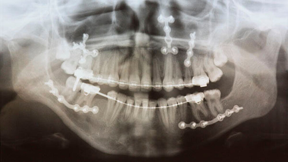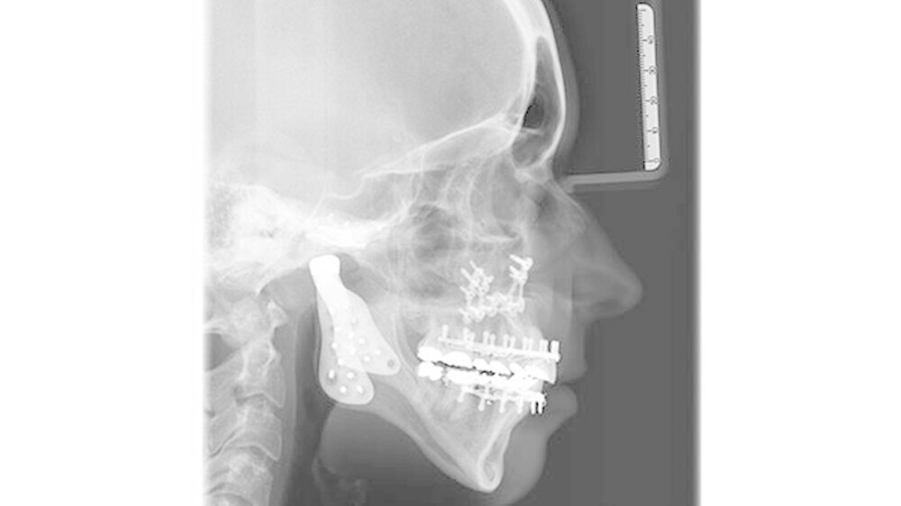 Daraufhin wurden eine kieferorthopädische Behandlung mit einer festsitzenden Spange und nacheinander zwei Operationen zur Umstellung des Ober- und Unterkiefers durchgeführt. Diese ersten Operationen konnten jedoch die weiter zunehmende Abweichung des Unterkiefers nach hinten und damit auch den offenen Biss nicht stoppen.