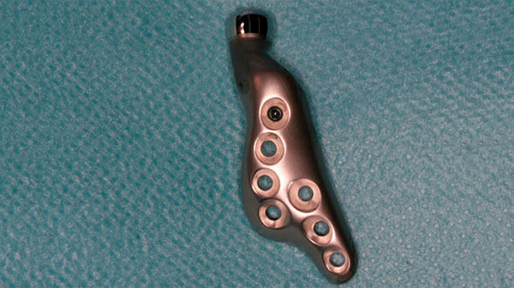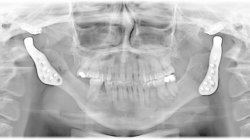 Die Kiefergelenk-Endoprothetik ist ein relativ neues, technisch anspruchsvolles Verfahren, mit dem aber dauerhafte Lösungen hauptsächlich in Fällen der Resorption - wie hier gezeigt - und bei Versteifungen des Kiefergelenks für die Patienten gefunden werden können, wenn andere Verfahren versagen. Die komplexe Methode erfordert sehr viel Erfahrung und wird bisher erst in wenigen Kliniken angeboten.