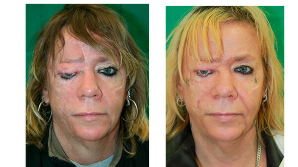 Die durch den Gewebeverlust entstandenen Defekte im Gesicht wurden über mehrere Jahre mit State of the Art-Methoden Schritt für Schritt wiederhergestellt. Um die Funktion des rechten Augenlids zu rekonstruieren, transplantierten die Hannoveraner MKG-Chirurgen Vollhaut vom Oberarm, rechts wurde der Gewebelappen so verlängert, dass eine ausreichende Bedeckung gewährleistet war. Die Wange konnte schrittweise mit ortsständigem Gewebe wiederhergestellt werden. Nach rund neun Wochen konnte die Patientin auf die Normalstation verlegt und nach weiteren zwei Monaten in eine Rehabilitationsbehandlung entlassen werden.