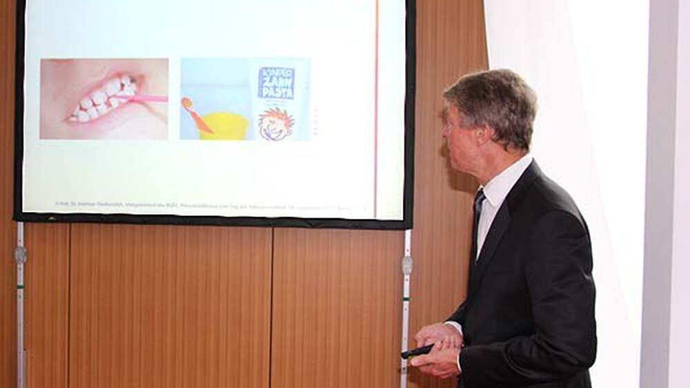Prof. Dr. Dietmar Oesterreich verwies auf die Bevölkerungsgruppen, die an der umfassenden Präventionsarbeit zu wenig partizipieren. Betroffen seien zum Beispiel Kleinkinder, Kinder und Jugendliche in prekären Lebenslagen, mit Migrationshintergrund oder auch mit einer Behinderung. Deutschlandweit sind bei den unter Dreijährigen schon 15 Prozent von Karies betroffen. Ursachen für die frühkindliche Karies sind exzessives Trinken von zucker- und säurehaltigen Getränken aus Saugerflaschen und Trinkhilfen – verbunden mit einer nicht ausreichend durchgeführten Mundhygiene im frühen Kindesalter.