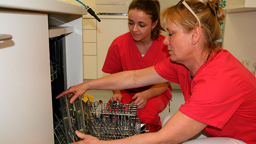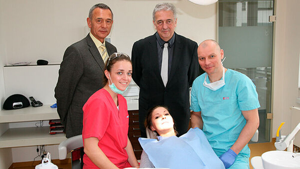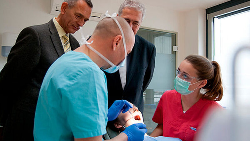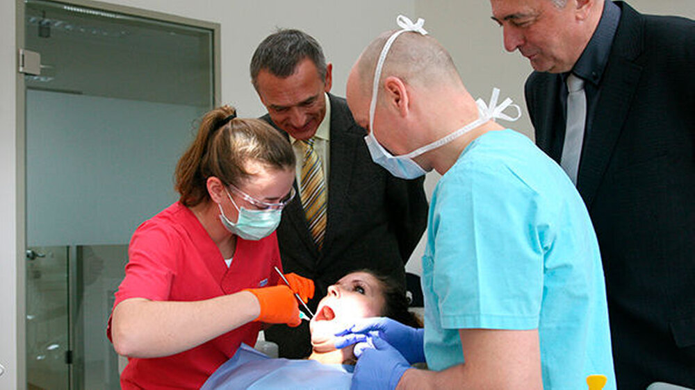 Fünf Tage verbringen sie in einer Allgemeinpraxis, wo sie unter Supervision des niedergelassenen Zahnarztes Diagnostik, Prävention und Therapie durchführen. Einen Tag assistieren sie in der Chirurgie. Das Besondere: Sie dürfen - unter vorab definierten Kriterien - dem Zahnarzt assistieren, soweit es ihre Kenntnisse zulassen. Das Programm entstand in Zusammenarbeit zwischen Hochschule und Kammer. Zuvor waren viele praktikable Strukturen und Details zu klären, unter anderem auch Fragen der Haftung und Versicherung, um ein Anforderungsprofil zu erarbeiten - mit Kriterien für die Praxen, die sich zur Kooperation bewerben.