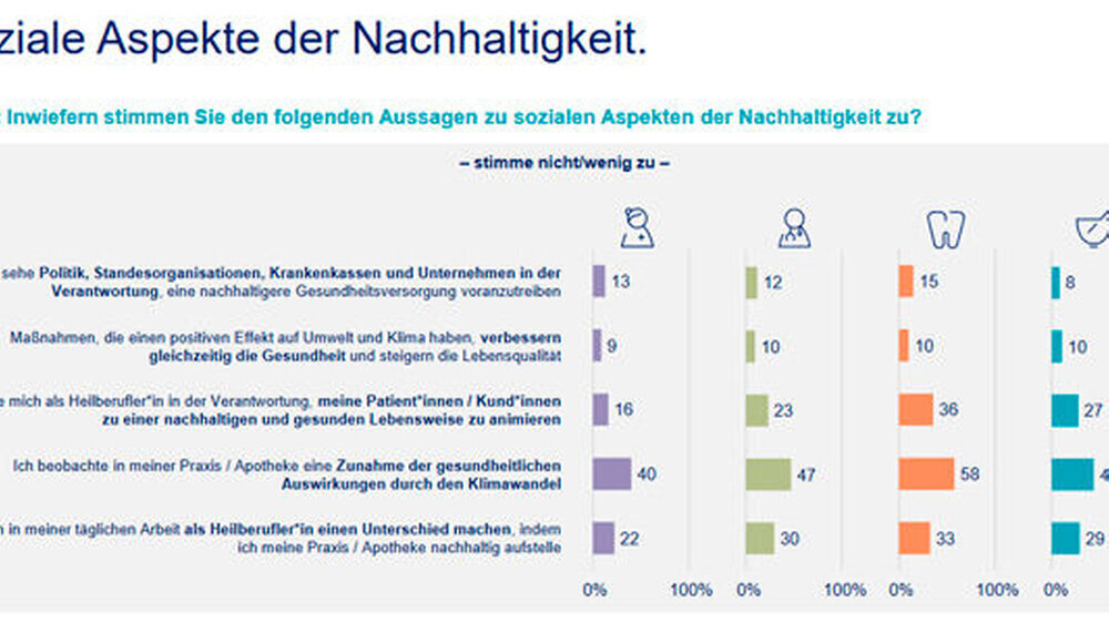 „Um sich dem vielschichtigen Thema zu nähern, haben wir uns in der Ausgestaltung unserer Studie an dem geläufigen ESG-Modell orientiert, das auf den drei Säulen 'Environmental', 'Social' und 'Governance' basiert. Entsprechend geht es nicht nur um den sorgsamen Umgang mit natürlichen Ressourcen, sondern auch um ökonomische und soziale Kriterien der Nachhaltigkeit”, erklärt Daniel Zehnich, Bereichsleiter Gesundheitsmärkte und Gesundheitspolitik bei der apoBank.