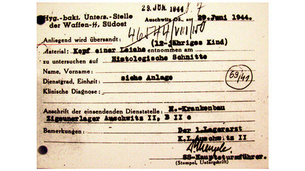 Blutproben und Augen schickt Mengele aus Auschwitz
