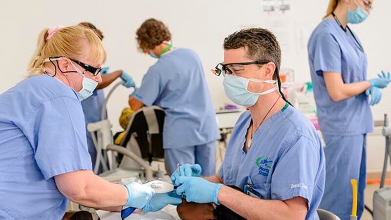Ich habe vor vielen Jahren nach Einsatzmöglichkeiten für Zahnarzthelferinnen im Internet gesucht. Dabei bin ich zum ersten Mal auch auf "das Hospitalschiff" aufmerksam geworden. In regelmäßigen Abständen nehme ich an Einsätzen für Zahnärzte ohne Grenzen (DWLF) teil, aber ich wollte schon immer auf die Africa Mercy.