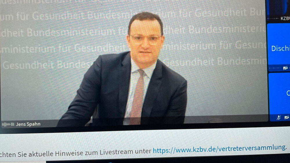 Spahn, der per Video zugeschaltet war, dankte der Zahnärzteschaft noch einmal für die Hilfe bei der Bewältigung der Pandemie. Er verwies darauf, dass es gelungen sei, „durch die Jahrhundertkrise zu kommen, ohne dass das deutsche Gesundheitswesen an irgendeiner Stelle überlastet gewesen wäre“. Darauf könne man zurecht stolz sein.