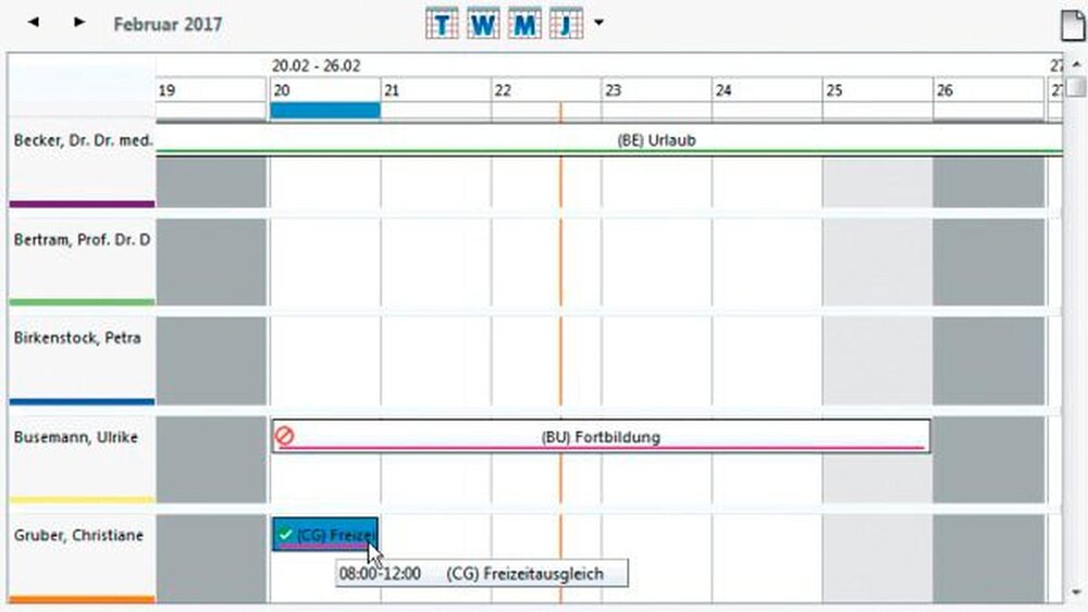 Sie erkennen auf Anhieb, wer zu welchem Zeitpunkt warum fehlt, und überschauen damit leichter, wann ein schlagkräftiges Team am Werk ist oder wo die Personallage dünn zu werden beginnt.