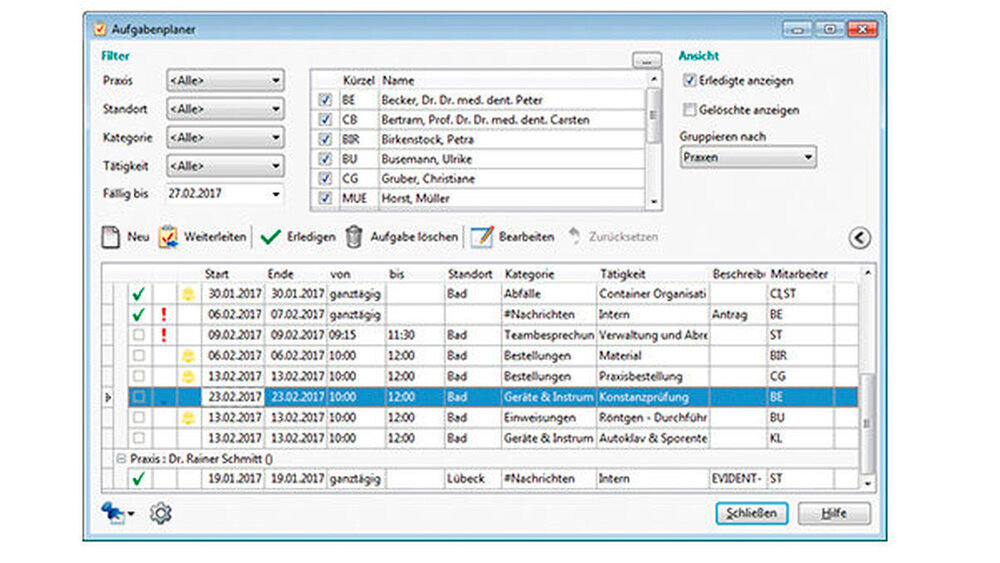 Der Aufgabenplaner schafft klare Verhältnisse, gerade auch für jene Tätigkeiten, die nicht direkt mit Patienten zu tun haben, etwa solche rund um Material, Sterilisation, Unterweisungen etc. Dafür und auch für patientenbezogene Aufgaben leistet das Tool beste Assistenz.
