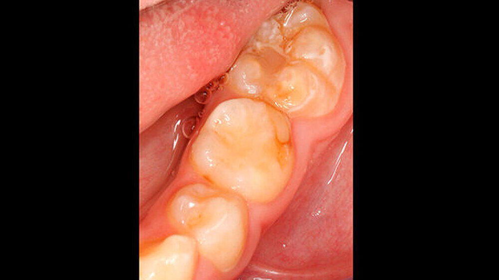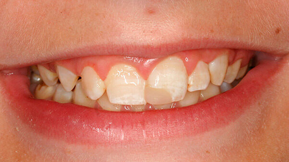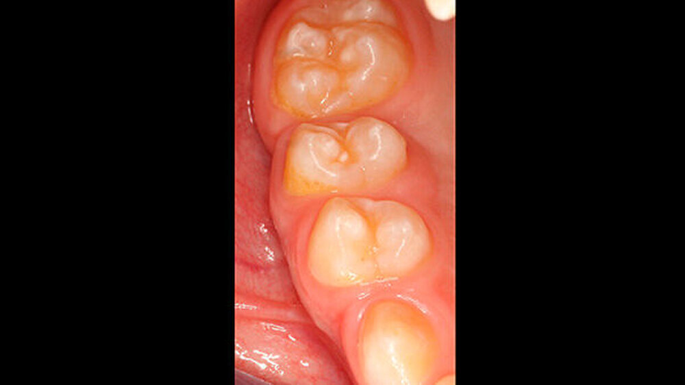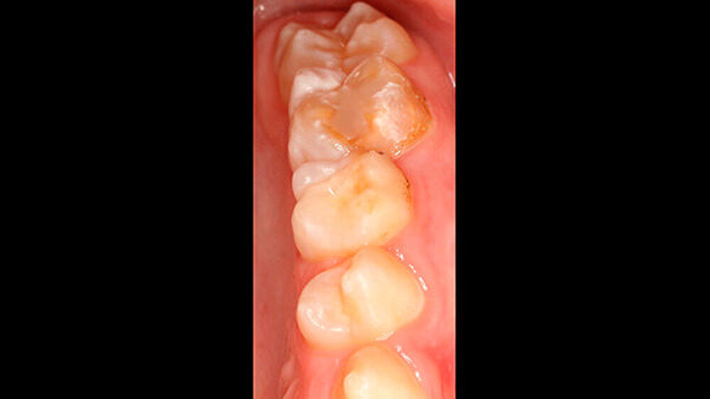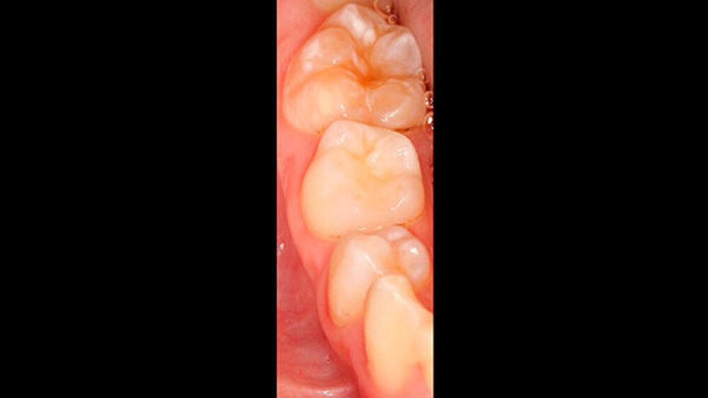 Der 13-jährige Patient stellte sich mit einer Überweisung und Bitte um Zweitmeinung vor. Die Mutter berichtete, dass vor einigen Jahren eine Schmelzanomalie diagnostiziert worden sei. Dies sei dadurch aufgefallen, dass einer der neu durchbrechenden Backenzähne sehr schnell eine Karies bekommen hätte. Dieses zog eine so umfangreiche Behandlung nach sich, so dass man dazu geraten habe, den Zahn lieber zu extrahieren. Die Extraktion sei auch kurz darauf erfolgt.