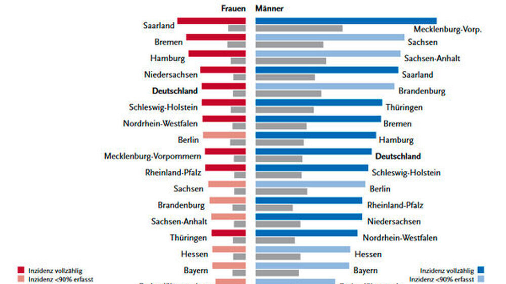 Diese 12. Ausgabe von "Krebs in Deutschland" beruht auf Daten der bevölkerungsbezogenen Krebsregister bis 2016. Alle Bundesländer haben mittlerweile eine flächendeckende Krebsregistrierung aufgebaut, dennoch können die Zahlen der Krebsneuerkrankungen in Deutschland nicht durch Zusammenzählen bestimmt werden, denn nach wie vor sind die einzelnen Register zu einem unterschiedlichen Grad vollzählig. Deshalb beruhen die Zahlen im Bericht noch auf Schätzungen, allerdings ist laut RKI inzwischen die Datenbasis deutlich breiter.