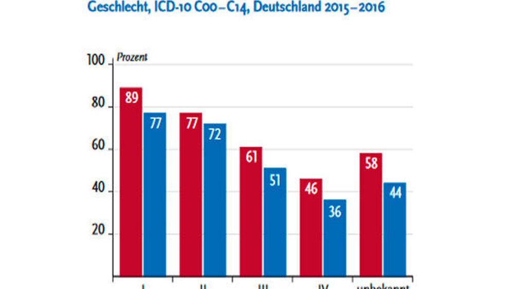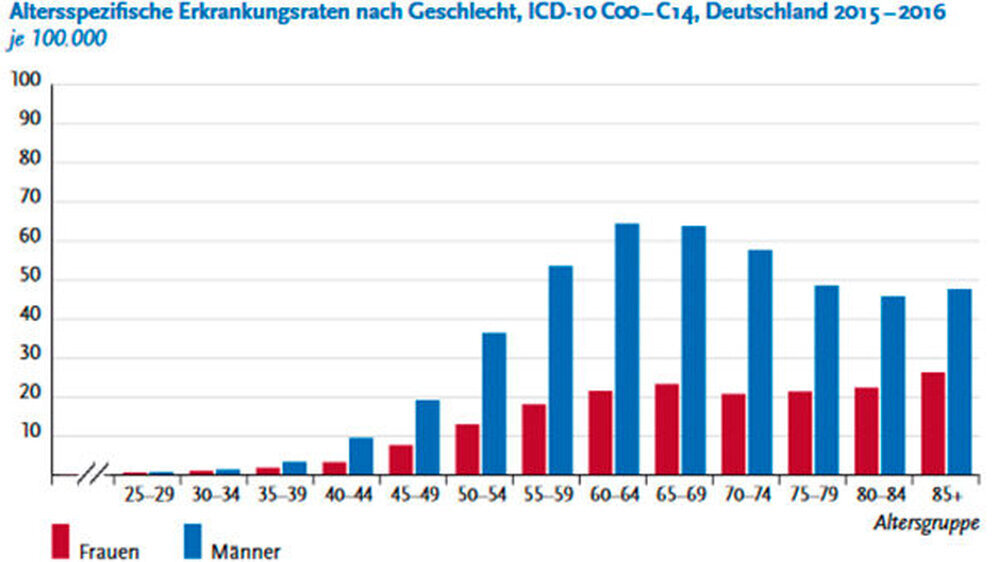 „Erfreulicherweise beobachten wir für viele Krebsarten eher rückläufige Erkrankungsraten, aber trotzdem steigt die Gesamtzahl der Krebserkrankungen aufgrund der Alterung der Gesellschaft“, erklärtRKI-Präsident Lothar H. Wieler. Daher wird für das Jahr 2020 eine Zunahme der neudiagnostizierten Krebserkrankungen auf rund 510.000 Erkrankungsfälle prognostiziert. Das RKI rechnet damit, dass die Zahl der Krebserkrankungen in Mundhöhle und Rachenraum nach der leicht positiven Entwicklung von 2015 (13.930 Fälle) bis 2016 (13.900 Fälle) bis 2020 auf 13.800 sinken wird.