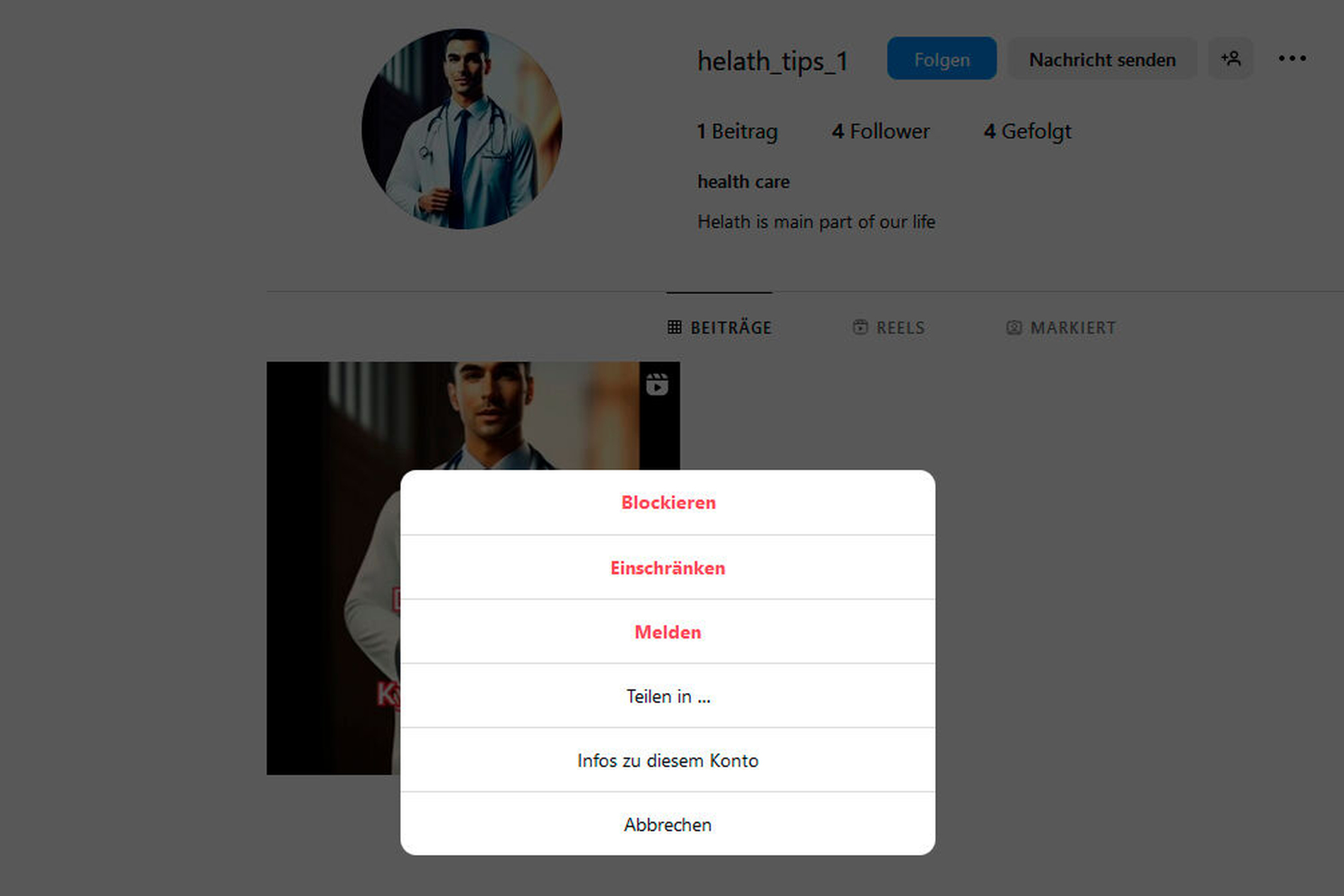 Nun liegt es am Verhalten der Nutzer-Community. Jeder Inhaber eines Instagram-Kontos kann die Profile der Fake-Ärzte finden, mit nur vier Klicks bei Instagram melden und deren Überprüfung auf Fehlinformationen veranlassen.