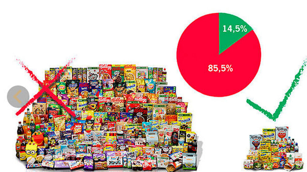Die Realität sieht foodwatch zufolge aber anders aus: So machen 10 der 16 untersuchten Konzerne heute ausschließlich Werbung für ungesunde Produkte, etwa Ferrero, Pepsico, Mars, Unilever und Coca-Cola. Die größte Anzahl an unausgewogenen Produkten bewerben Nestlé (44 Produkte), Kellogg‘s (24 Produkte) und Ferrero (23 Produkte).