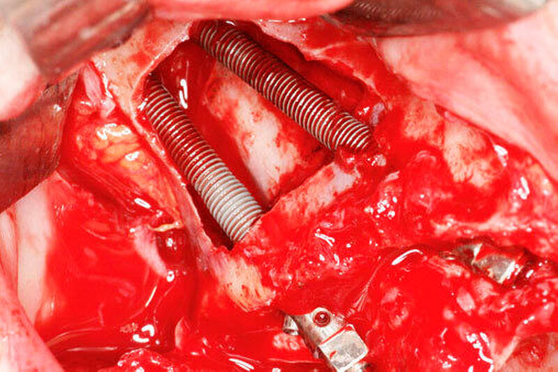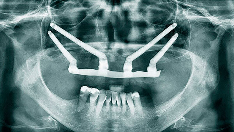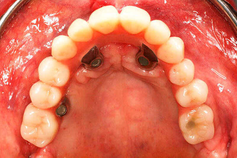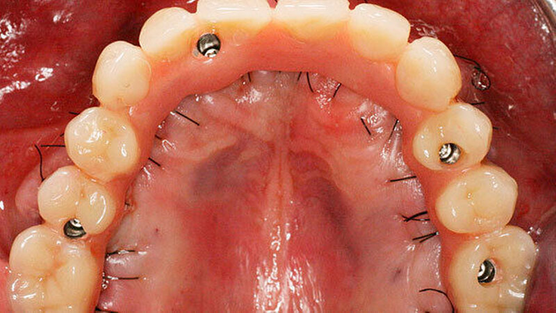 Für einen festsitzenden Zahnersatz werden in der Regel sechs bis acht Implantate benötigt. Um diese Therapieoption zu realisieren, sind häufig aufwändige Rekonstruktionen des Kieferkamms, zum Teil unter Nutzung extraoraler Spenderregionen, notwendig.