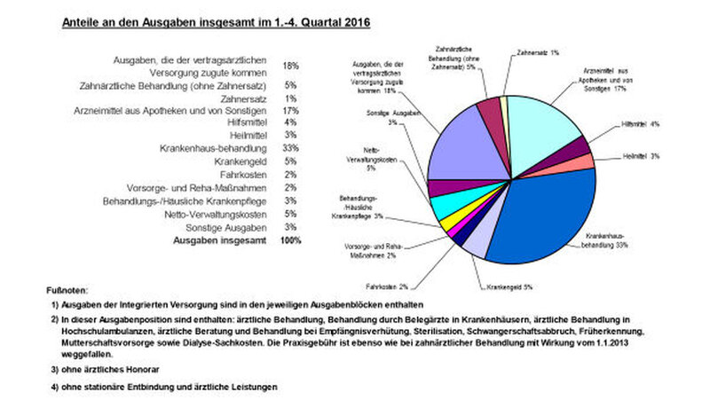 Außerdem: Während die Rücklagen der Krankenkassen weiter steigen, sinken die Reserven im Gesundheitsfonds seit 2013 von 13,6 Milliarden Euro auf 9,1 Milliarden Euro Ende 2016. So verzeichnete der Gesundheitsfonds 2016 laut Gesundheitsministerium einen "Ausgabenüberhang" von rund 865 Millionen Euro - de facto spricht man hier von einem Minus.