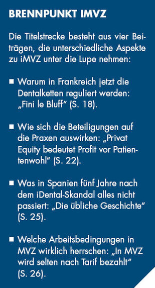 Das am 15. Mai veröffentlichte Gutachten „Verfassungs- und europarechtliche Grenzen verschärfter und neuer Verbote und Beschränkungen betreffend die Träger- und Inhaberstrukturen von Medizinischen Versorgungszentren (MVZ)" des Bundesverbandes der Betreiber medizinischer Versorgungszentren (BBMV) wird in den zm in einer der kommenden Ausgaben ausführlich von Univ.-Prof. Dr. Helge Sodan kommentiert. Er ist Lehrstuhlinhaber für Staats- und Verwaltungsrecht, Öffentliches Wirtschaftsrecht und Sozialrecht an der Freien Universität Berlin. Die Kassenzahnärztliche Bundesvereinigung und die Bundeszahnärztekammer werden in dem Zusammenhang auf Basis von statistischen Zahlen die gesamte Entwicklung am Markt mit Blick auf die Versorgung bewerten.