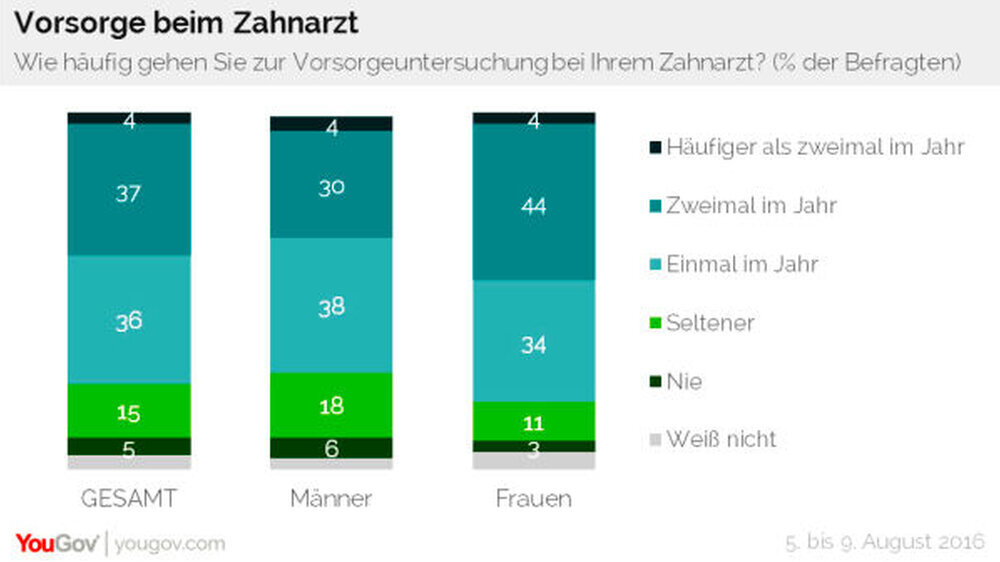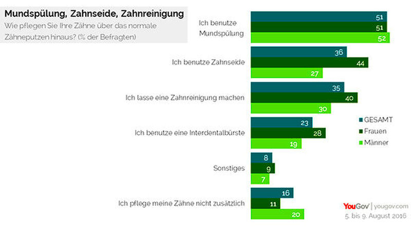 Das Unternehmen YouGov Omnibus befragtevom 5. bis 9. August 2016repräsentativ insgesamt 1.043 Frauen und Männer in Deutschland.