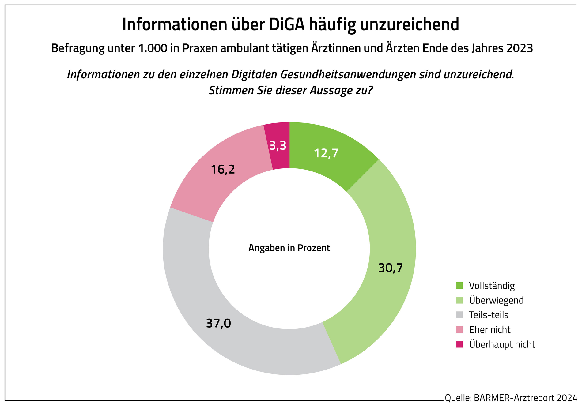 47 Prozent der Behandelnden sind laut Report der Meinung, dass eine DiGA die Behandlung häufig oder sehr häufig sinnvoll unterstützt. Laut einer Umfrage der Barmer unter 1.000 Behandlerinnen und Behandlern verschiedener Disziplinen wissen zwar 95 Prozent von ihnen durchaus, was DiGA sind, allerdings sind für sie vor allem die Informationen zu einzelnen DiGA oft unzureichend.