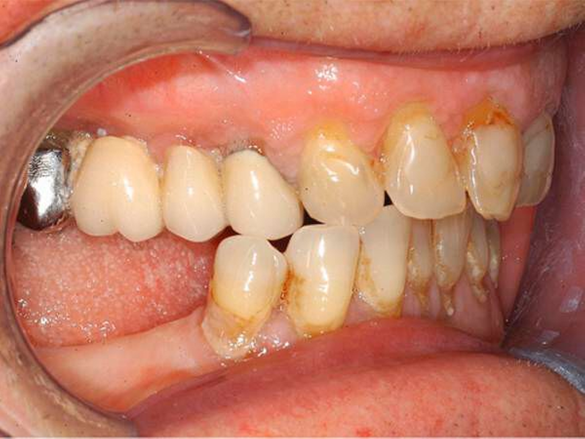 Nachdem die Therapie keine Veränderung brachte, wurde die Frau zur weiteren Abklärung an einen Fachzahnarzt für Parodontologie überwiesen, der eine Gingivektomie der hyperplastischen Gingiva empfiehl und die Patientin aufgrund der Grundmedikation mit Denosumab an unsere Klinik überwies.