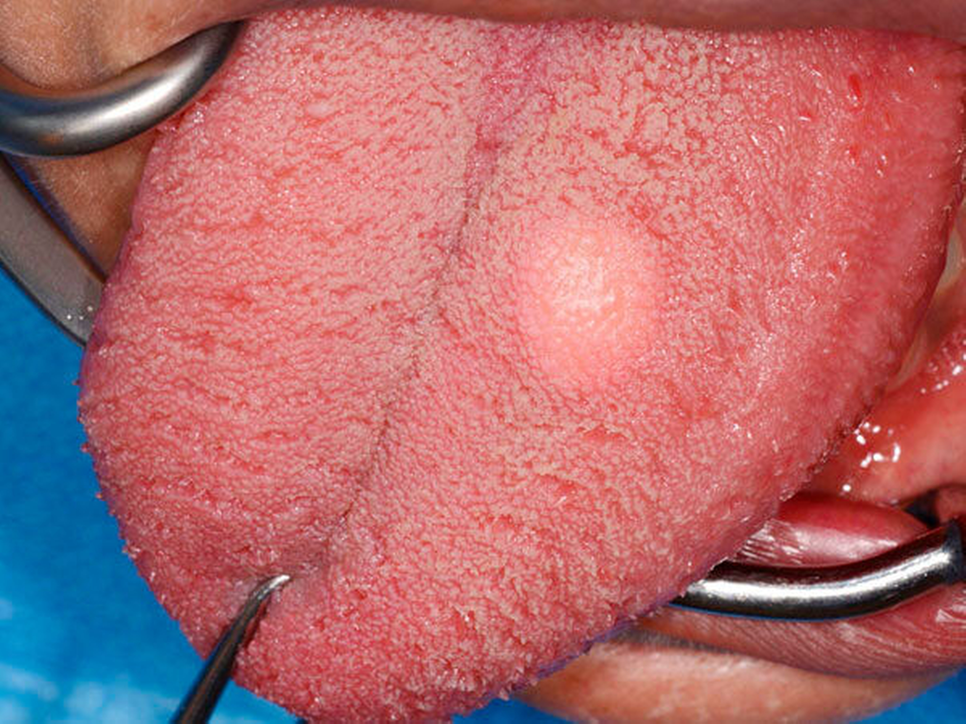 Die Patientin hatte bereits seit einem Jahr einen derben Knoten im Bereich der linken Zunge bemerkt. Dieser sei langsam größenprogredient gewesen – und sollte nun auf ihren Wunsch hin abgeklärt werden. Ähnliche Erscheinungen seien bei ihr oder in ihrer Familie bisher nicht beobachtet worden.