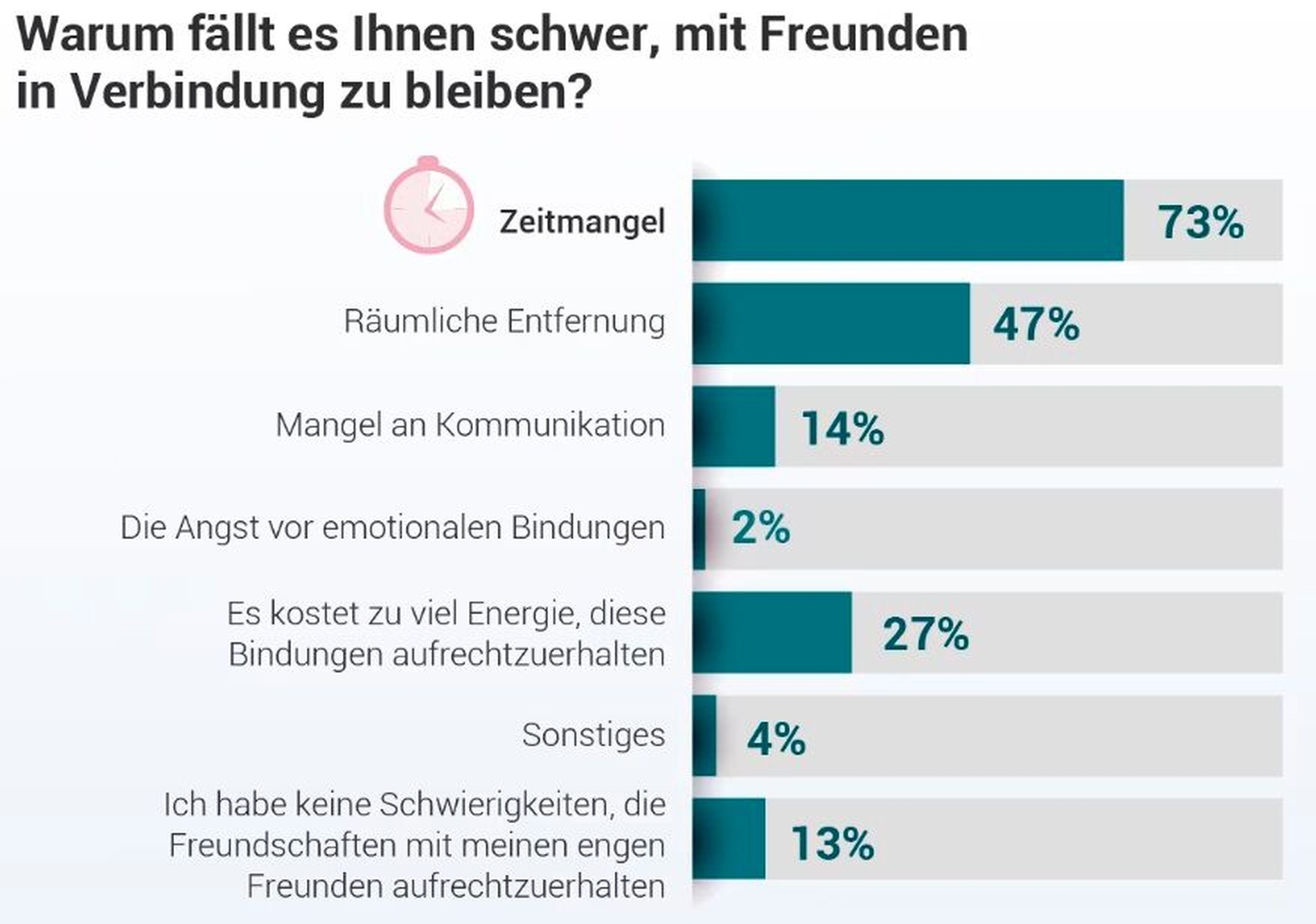 Die Pandemie hat Freundschaften jedoch auf eine harte Probe gestellt. 59 Prozent der Umfrageteilnehmer berichten, dass ihre Freunde andere Ansichten zu SARS-Cov-2-Impfungen oder zur Therapie von COVID-19 hatten. 65 Prozent der Befragten schreiben, dass sich dies negativ auf die Freundschaft ausgewirkt habe.