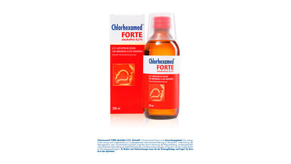 Nach parodontalchirurgischen Eingriffen muss verhindert werden, dass eine Reinfektion von aus der Mundhöhle stammenden Mikroorganismen stattfindet, was bereits binnen kurzer Zeit der Fall sein kann. Um die Neubesiedelung so niedrig wie möglich zu halten, muss die gesamte Mundhöhle des Patienten professionell desinfiziert werden. Chlorhexidinhaltige Mundhöhlenantiseptika mit einer Konzentration von 0,2 % CHX wie Chlorhexamed FORTE alkoholfrei 0,2 % haben sich nach parodontalchirurgischen Eingriffen therapiebegleitend und adjunktiv in der Heilungsphase besonders bewährt. Diese Antiseptika gelten heute als Goldstandard.4