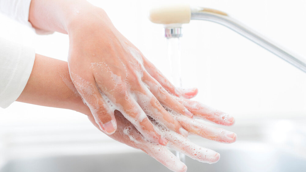 Zu Hause ist Händewaschen mit Seife oder Waschlotion ausreichend, um sich vor Viren, wie SARS-CoV-2 zu schützen. Unterwegs, ohne Zugang zu einer Waschmöglichkeit, schützen Desinfetionsmittel, die in der Regel gut hautverträglich sind.