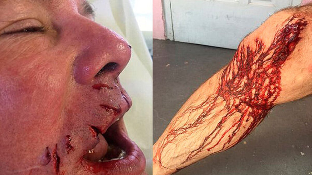 "Ich kam an die Oberfläche und ganz plötzlich fühlte es sich an, als würde ein Güterzug über mich drüber fahren", erzählt er in seinem Facebook-Video. "Ich war wie betäubt und wusste zuerst nicht, was mich da getroffen hatte“, berichtet der Zahnarzt. "Dann drehte ich mich um: ein Hai! Und ich konnte die weiße Unterseite seines Mundes und seine Zähne sehen." Cutbirth versuchte, sich zu verteidigen, indem er dem Hai auf den Kopf drosch. „Doch der Hai schlug zurück, erst nur ein wenig, um dann wie in einem Rausch auf mich loszuschießen, und in meine Seite und mein rechtes Bein zu hämmern", sagte Cutbirth. "Schließlich ließ er von mir ab, nahm sich den aufgespießten Fisch und zog ab."