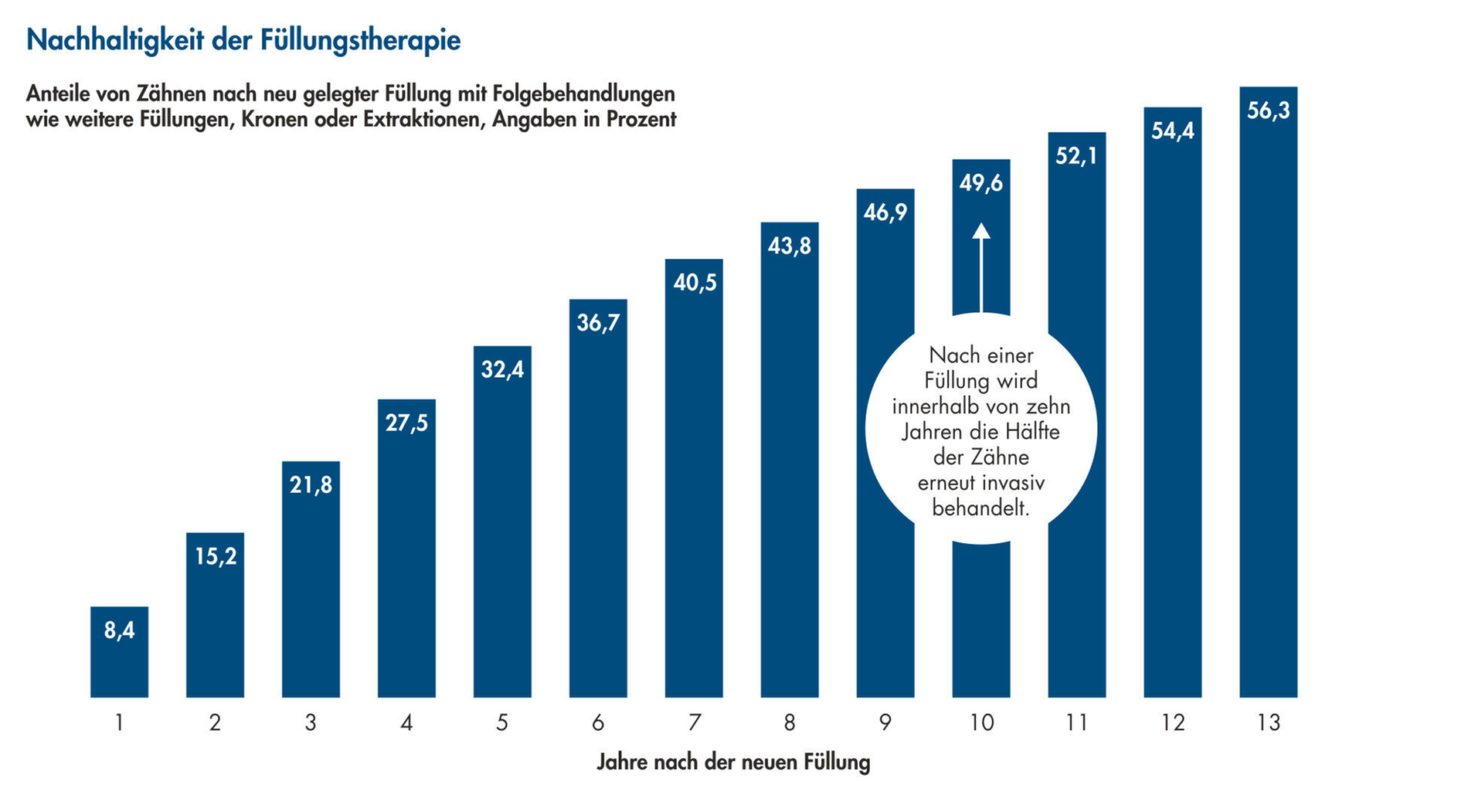 „Die Haltbarkeit von Zahnfüllungen nimmt seit Jahren kontinuierlich zu. Das deutet auf eine sich weiter verbessernde Mundgesundheit hin. Diese Entwicklung sollte auch nach dem Verbot von Zahnamalgam zu Jahresbeginn künftig verstetigt werden“, sagt der Vorstandsvorsitzende der BARMER, Prof. Dr. med. Christoph Straub. Insbesondere die Haltbarkeit des Füllungswerkstoffs Amalgam sei ein Vorteil gewesen, der für Patientinnen und Patienten auch bei Amalgam-Alternativen möglichst dauerhaft erhalten bleiben solle.