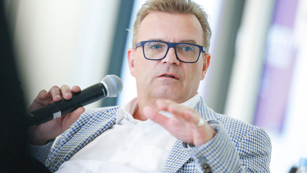 BZÄK-Präsident Prof. Christoph Benz bedankte sich bei allen engagierten Zahnärztinnen Zahnärzten mit den Worten: „Ganz großen Respekt! Ist immer noch das hartnäckige Klischee, dass Zahnärzte nur Golfbags schultern anstatt zu helfen. Und das stimmt hinten und vorne nicht. Es gibt viel Engagement und darauf bin ich total stolz – auf die Kollegenschaft und auch auf die Studierenden!“ BZÄK/Tobias Koch
