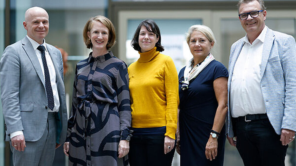 Vor Ort im Austausch waren Dr. Karsten Heegewaldt, Präsident der Zahnärztekammer Berlin und Vorstandsreferent der BZÄK für Soziale Aufgaben, als Leiter der Konferenz, Prof. Dr. Silke van Dyk, Professorin für Politische Soziologie an der Friedrich-Schiller-Universität Jena, mit einem Impulsvortrag und Linda Heitmann (Bündnis 90/Die Grünen), Mitglied im Gesundheitsausschuss des Bundestages. Dr. Imke Kaschke, Direktorin Gesundheit von Special Olympics Deutschland e. V., berichtete über die Arbeit mit Menschen mit geistiger Beeinträchtigung. Prof. Dr. Christoph Benz, Präsident der BZÄK, bedankte sich bei allen engagierten Zahnärztinnen und Zahnärzten für ihren Einsatz (v. l. n. r.). BZÄK/Tobias Koch