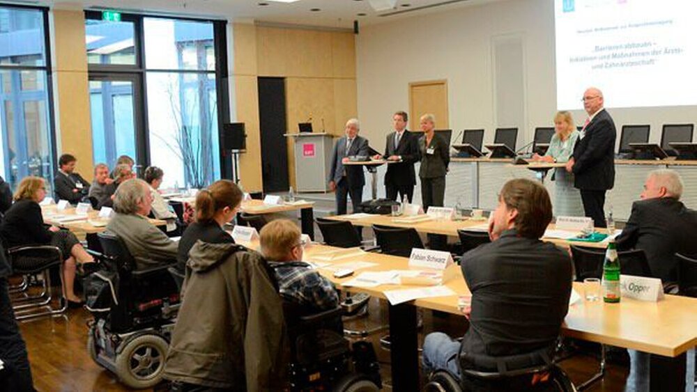"Es geht uns nicht darum, alle Praxen baulich komplett umzugestalten, sondern die Sensibilisierung in den Praxen zu schärfen", sagte Gastgeberin Regina Feldmann, Vorstand der Kassenärztlichen Bundesvereinigung, und verwies auf die KBV-Broschüre "Barrieren abbauen".