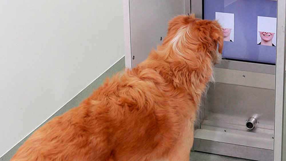 Hunde der einen Testgruppe wurden in der Übungsphase darauf trainiert, nur fröhliche Gesichter anzustupsen. Eine andere Gruppe sollte nur zornige Gesichter auswählen. Um auszuschließen, dass sich die Tiere lediglich an auffälligen Bildunterschieden wie den hervorscheinenden Zähnen oder den Zornesfalten zwischen den Augen orientieren, zerteilten die Forschenden die Bilder horizontal. Die Hunde bekamen währen der Trainingsphasen also entweder nur die Augen- oder die Mundpartie zu sehen.