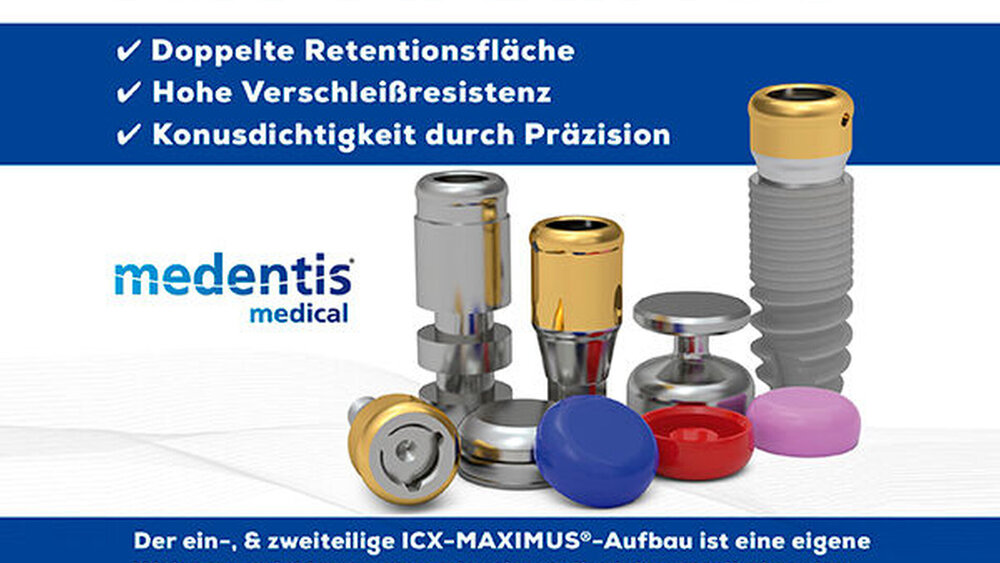 Der ein-, & zweiteilige ICX-Maximus-Aufbau ist eine eigene Weiterentwicklung von medentis medical, kompatibel zu den Locator-Aufbauten. Mit Einsatz des Systems fallen weniger Nachsorgeuntersuchungen an.