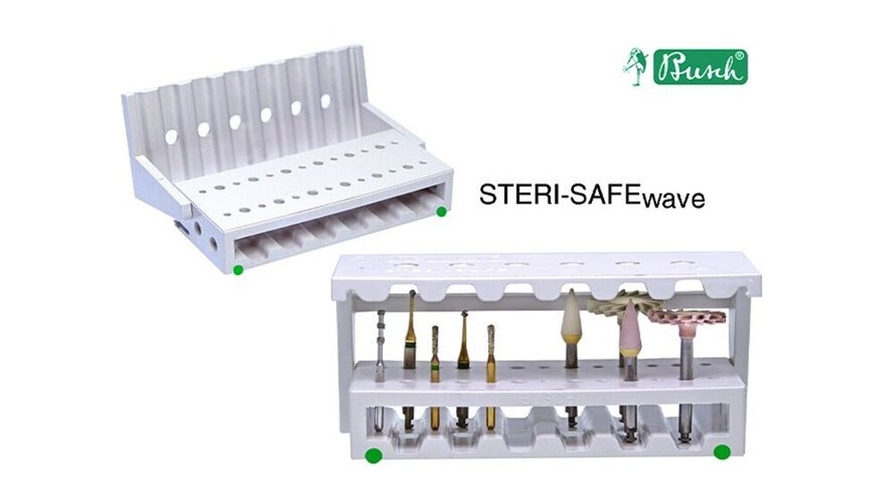 Dabei kann der aus desinfizier- und sterilisierbarem Medical Kunststoff bestehende STERI-SAFEwave gleichzeitig bis zu 14 FG- und 12 WST-Instrumente mit unterschiedlichen Gesamtlängen aufnehmen.
